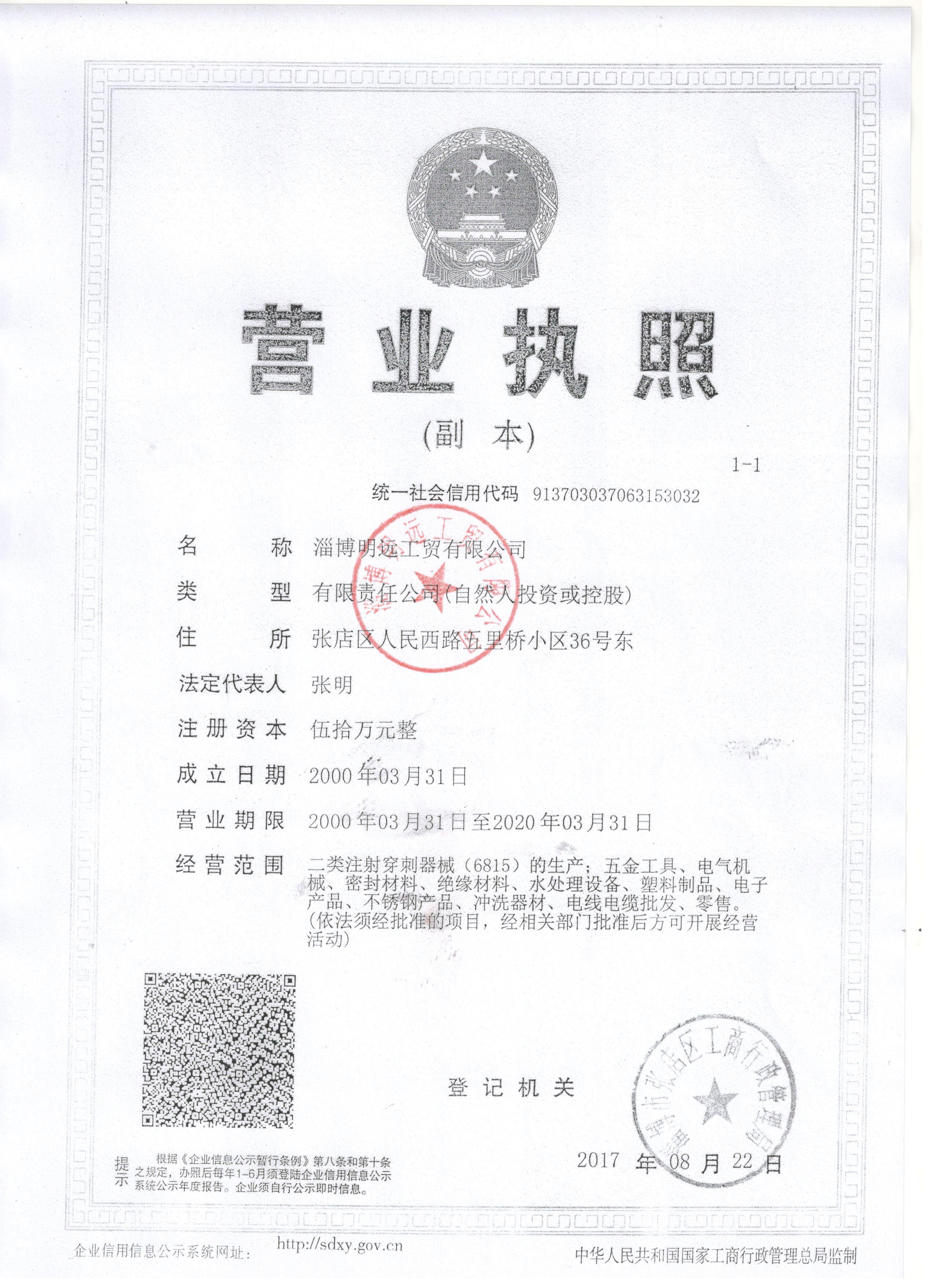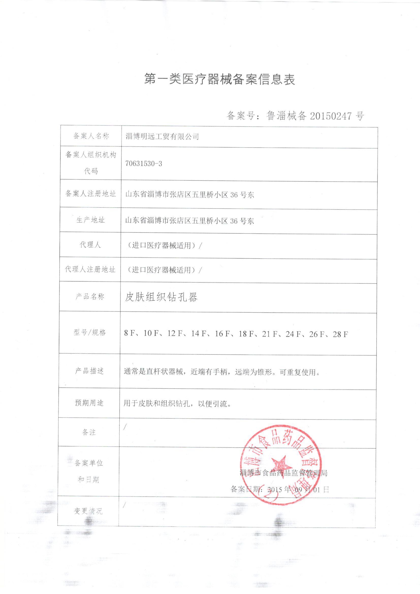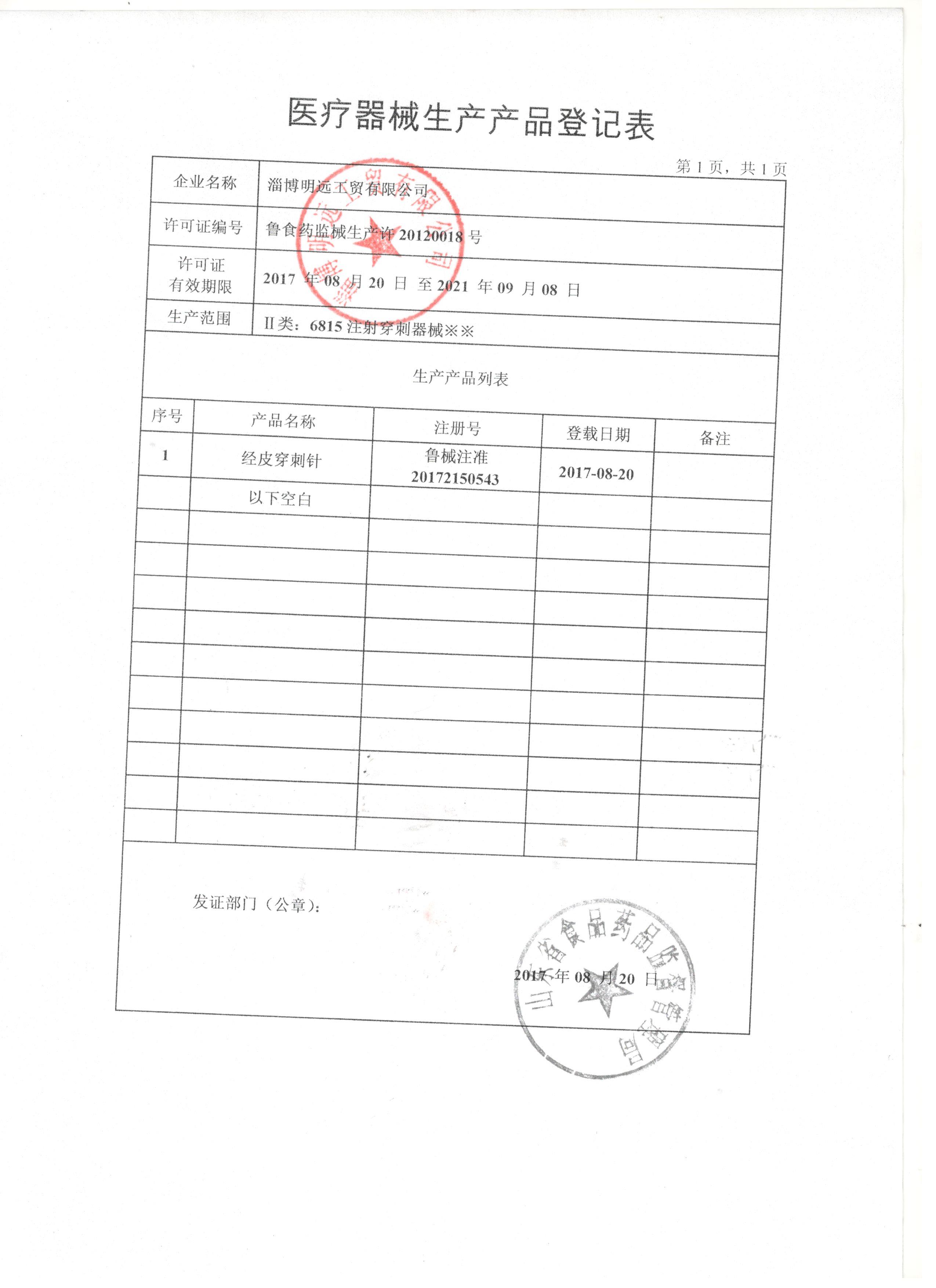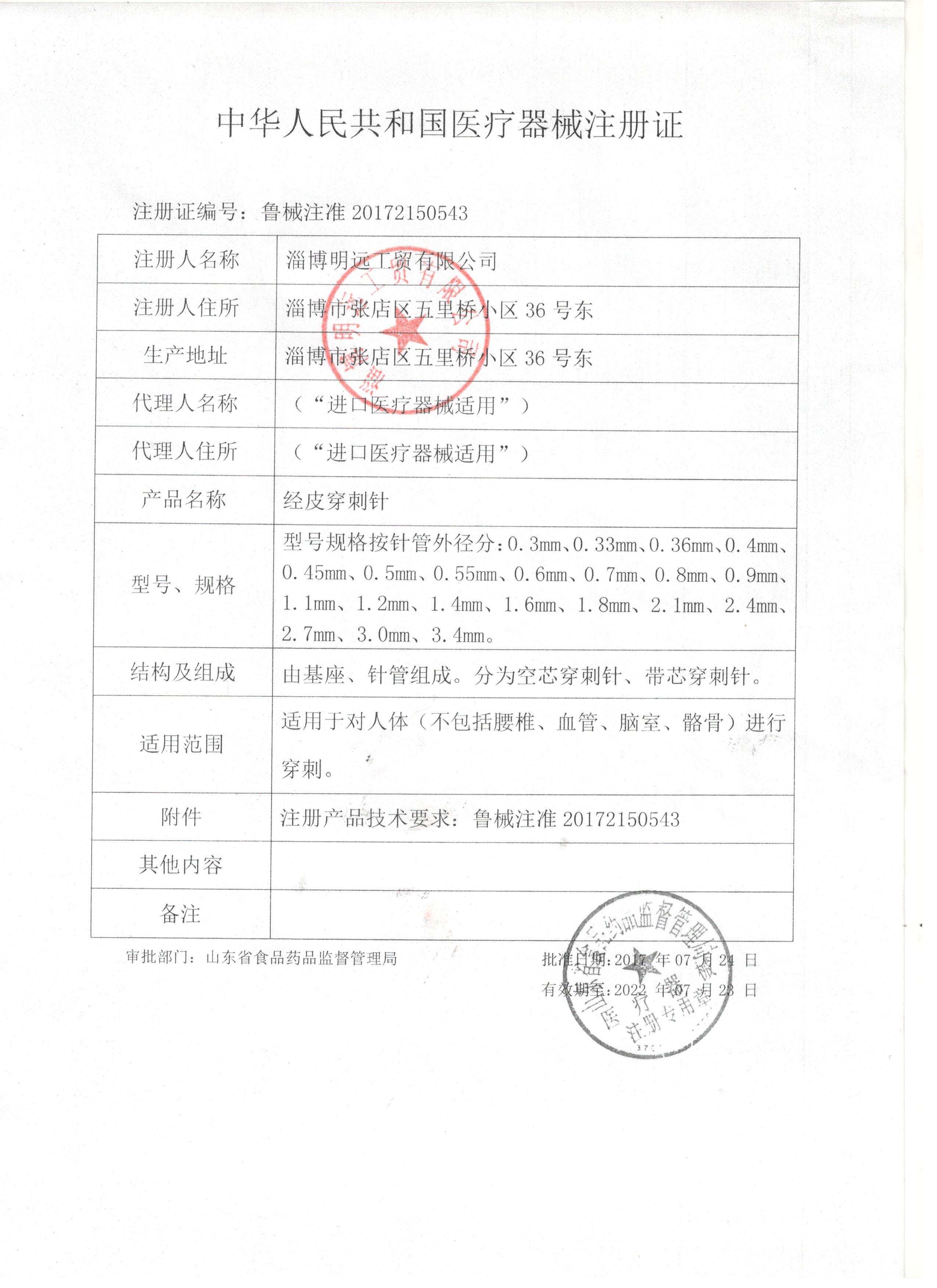 淄博明遠工貿有限公司 公司成立于2000年,是二類醫用穿刺器械專業生產廠家。公司以微創手術器械為發(fā)展方向,產品以各類特種穿刺針為主。我們以全方位的管理手段,嚴格地控制產品品質.歡迎您選用我公司產品并對我們的產品提出建設性的建議和意見.我們愿意成為您好的生意伙伴和知心朋友。